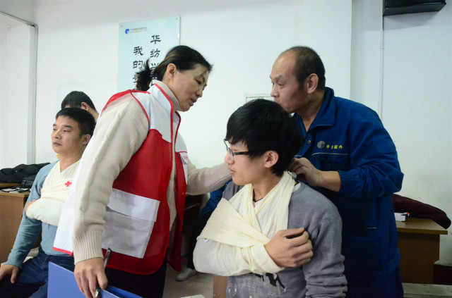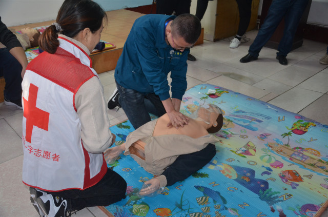 參加培訓(xùn)的安全員通過認真學(xué)習(xí)和按照要求進行實際操作演練,在學(xué)習(xí)心肺復(fù)蘇的操作以及AED的使用,創(chuàng)傷救護止血、包扎、固定、搬運等四大技術(shù)的理論與實際操作基礎(chǔ)上,還認真聆聽了中國紅十字會的發(fā)展歷程以及“三救三獻”的工作職責。