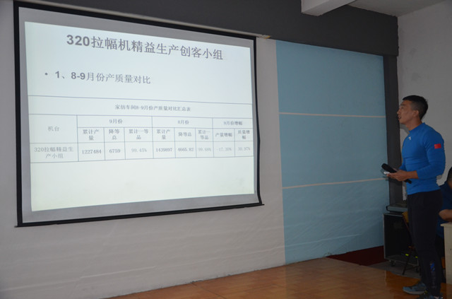 10月11日,公司家紡車間在職工大學大教室舉行了9月份精益生產(chǎn)總結(jié)會,對車間9月份的精益生產(chǎn)運行情況進行總結(jié),并對相關問題進行剖析。各主要精益生產(chǎn)承包小組對自身的成績以及不足進行總結(jié),并制定了后續(xù)改進計劃和提升目標。會議由車間技術主管鄭凱主持,車間主任王旭洲進行了全面總結(jié)并對持續(xù)深化精益生產(chǎn)工作提出了新要求。