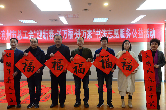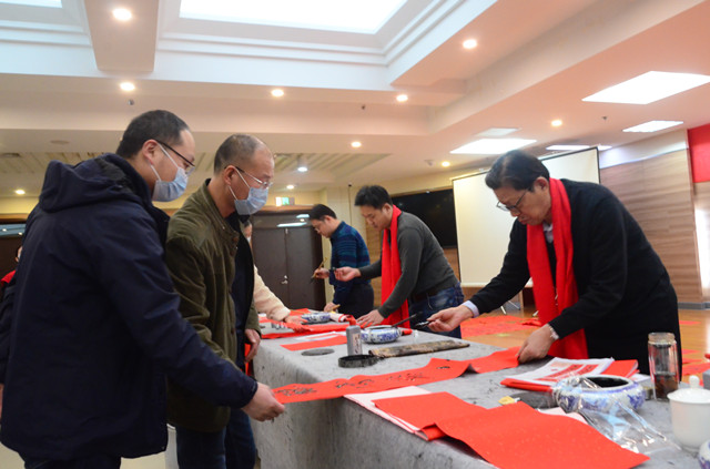 1月29日,市總工會在市職工活動中心舉行“迎新春 送萬福 進萬家”書法志愿服務公益活動舉,邀請到市書法家協(xié)會的5位書法家現(xiàn)場書寫春聯(lián)、福字。公司勞模代表和職工代表與渤?;钊⒔贿\集團的代表一道,參加此次活動。