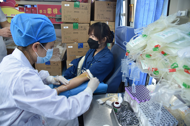 獻(xiàn)血隊(duì)伍中,既有工作多年的老同志,也有剛剛參加工作的新員工。獻(xiàn)血車就位后,員工在濱州市中心血站工作人員的指導(dǎo)下,認(rèn)真填寫獻(xiàn)血登記表、測量血壓、抽血化驗(yàn),經(jīng)血液檢驗(yàn)合格后開始獻(xiàn)血。“我參加無償獻(xiàn)血的初衷,就是想盡自己的一點(diǎn)力量。”在場參與獻(xiàn)血的一名員工說到。簡單的一句話,展現(xiàn)的卻是充滿溫暖情感的無私之愛。