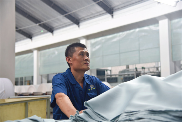 導(dǎo)讀:今年38歲的退役軍人、華紡股份有限公司家紡車間前處理輪班長(zhǎng)孫鎮(zhèn),他于2005年從部隊(duì)退役后進(jìn)入公司,入職17年來先后躋身公司的優(yōu)秀員工、高級(jí)操作工等行列。
