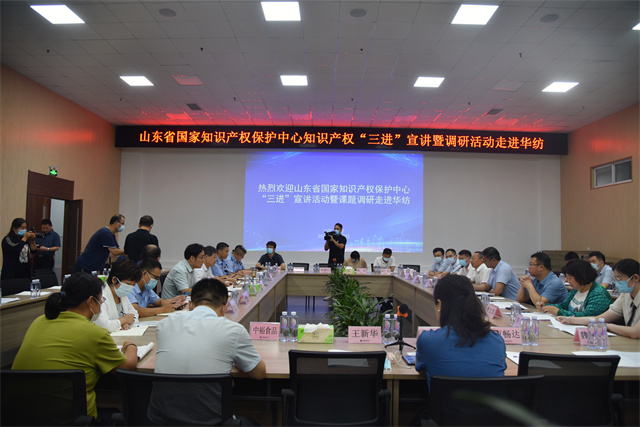 導讀:7月29日,山東省市場監(jiān)管局市場稽查專員蘇鵬、省國家知識產(chǎn)權(quán)保護中心副主任尹強民一行18人,來到華紡股份有限公司開展知識產(chǎn)權(quán)“三進”宣講暨調(diào)研活動。