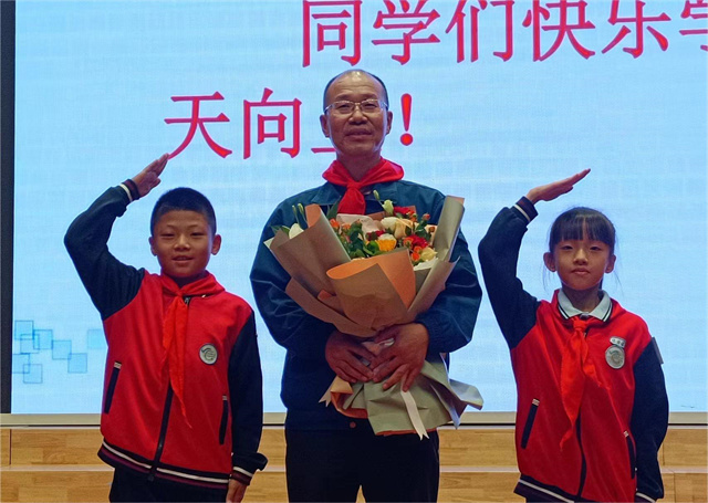 在課堂結(jié)束后的采訪(fǎng)環(huán)節(jié)中,同學(xué)們踴躍提問(wèn),趙奇生回答了同學(xué)們的問(wèn)題并且鼓勵(lì)同學(xué)們“學(xué)習(xí)如逆水行舟,不進(jìn)則退,要不斷學(xué)習(xí),不斷進(jìn)步。”活動(dòng)最后,學(xué)生代表為趙奇生戴上紅領(lǐng)巾并向他獻(xiàn)花。