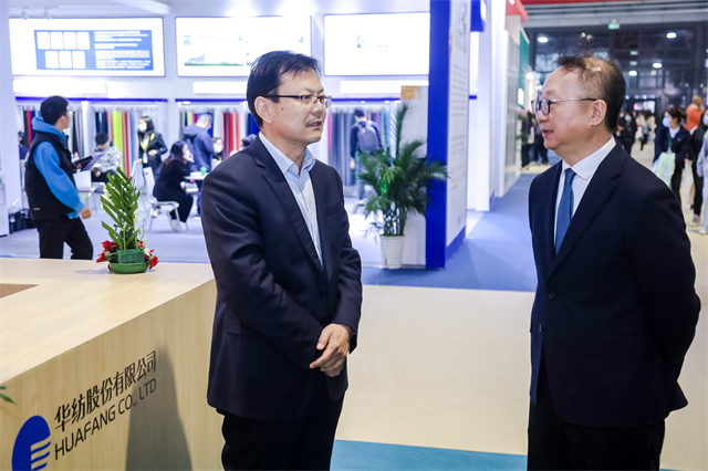 期間,中國紡織工業(yè)聯(lián)合會會長孫瑞哲,國家紡織產(chǎn)品開發(fā)中心主任李斌紅,國家紡織產(chǎn)品開發(fā)基地秘書處秘書長、中國紡織信息中心產(chǎn)品開發(fā)部主任陳小麗等到公司展位觀展。在與公司黨委書記、董事長盛守祥及服裝面料分公司總經(jīng)理王超交流中,孫瑞哲提到,華紡作為中國紡織印染行業(yè)的龍頭骨干企業(yè),要加強與參展企業(yè)交流溝通,既要展現(xiàn)公司魅力,又要做好信息交換、交流學習等相關(guān)工作,抓住機會,拓展品牌影響力,為公司開拓市場、擴大知名度,實現(xiàn)從制造加工向品牌創(chuàng)意的轉(zhuǎn)型升級夯實基礎(chǔ)。
