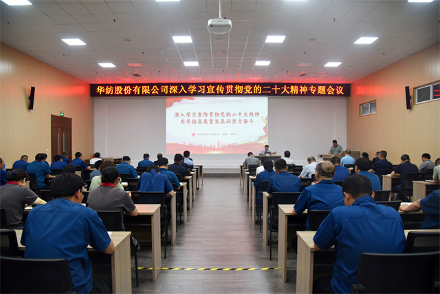 盛守祥指出,黨的二十大是在全黨全國(guó)各族人民邁上全面建設(shè)社會(huì)主義現(xiàn)代化國(guó)家新征程、向第二個(gè)百年奮斗目標(biāo)進(jìn)軍的關(guān)鍵時(shí)刻召開(kāi)的一次十分重要的大會(huì),是一次高舉旗幟、凝聚力量、團(tuán)結(jié)奮進(jìn)的大會(huì)。大會(huì)回顧總結(jié)了過(guò)去五年的工作和新時(shí)代十年的偉大變革,闡述了開(kāi)辟馬克思主義中國(guó)化時(shí)代化新境界、中國(guó)式現(xiàn)代化的中國(guó)特色和本質(zhì)要求等重大問(wèn)題,對(duì)全面建設(shè)社會(huì)主義現(xiàn)代化國(guó)家、全面推進(jìn)中華民族偉大復(fù)興進(jìn)行了戰(zhàn)略部署。也為我們?nèi)A紡事業(yè)高質(zhì)量發(fā)展指明了前進(jìn)方向。華紡作為中國(guó)紡織印染行業(yè)重要骨干力量,將堅(jiān)決貫徹黨的二十大精神,牢牢把握新時(shí)代新征程黨的使命任務(wù),自覺(jué)把責(zé)任擔(dān)當(dāng)放在心上、扛在肩上,以高質(zhì)量發(fā)展為目標(biāo),踔厲奮發(fā)推進(jìn)高水平現(xiàn)代化企業(yè)建設(shè)。