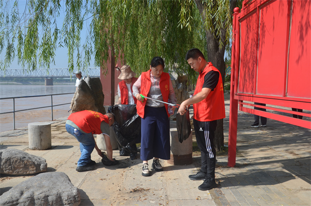 上午8時50分志愿者們準時集合出發(fā),大家身穿紅色馬甲,頭頂烈日、自由組隊,發(fā)揮團隊協(xié)作精神,沿著黃河兩岸徒步行走撿拾垃圾,有的手持鉗夾,有的拿著垃圾袋,認真清理收拾垃圾,將廢棄的煙盒、燒烤殘余等垃圾清理干凈放入袋中。志愿者們充滿干勁,充分發(fā)揚不怕臟,不怕苦,不怕累的精神,積極投身到環(huán)境清潔行動中,成為黃河邊一道靚麗的風景線。